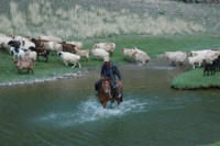 dürfen filmen und fotografieren. Sie lassen sich hier in der Nähe des Wassers mit ihrer kleinen Kuh- und Yaksherde
