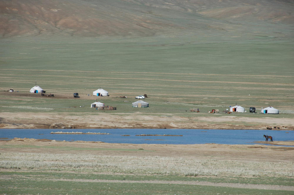 einem riesigen See (Khar Us Nuur) in einem Naturschutzgebiet. Hier tummeln sich Schwäne, Fischreiher, Möwen
