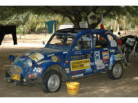 Fahrzeuges im Schlamm versank. Allah sei Dank, bekam er von holländischen Rallyefahrern Hilfe.