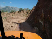 weggebrochen und die Straße geht in eine Schotterpiste über. Gewürzt ist das Ganze noch mit Spurrillen,
